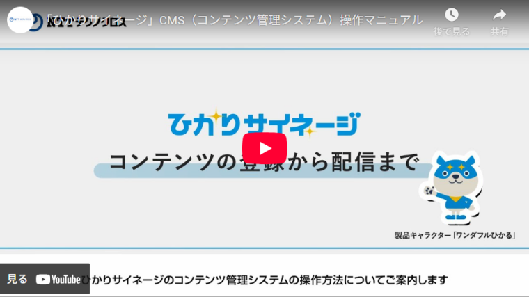 こちらの動画は、そのNTTテクノクロスがYouTubeチャンネルにアップしている動画マニュアルの一つで、自社で提供しているサービスの一つである「ひかりサイネージ」のCMSでのコンテンツ管理の方法をわかりやすく解説しています。